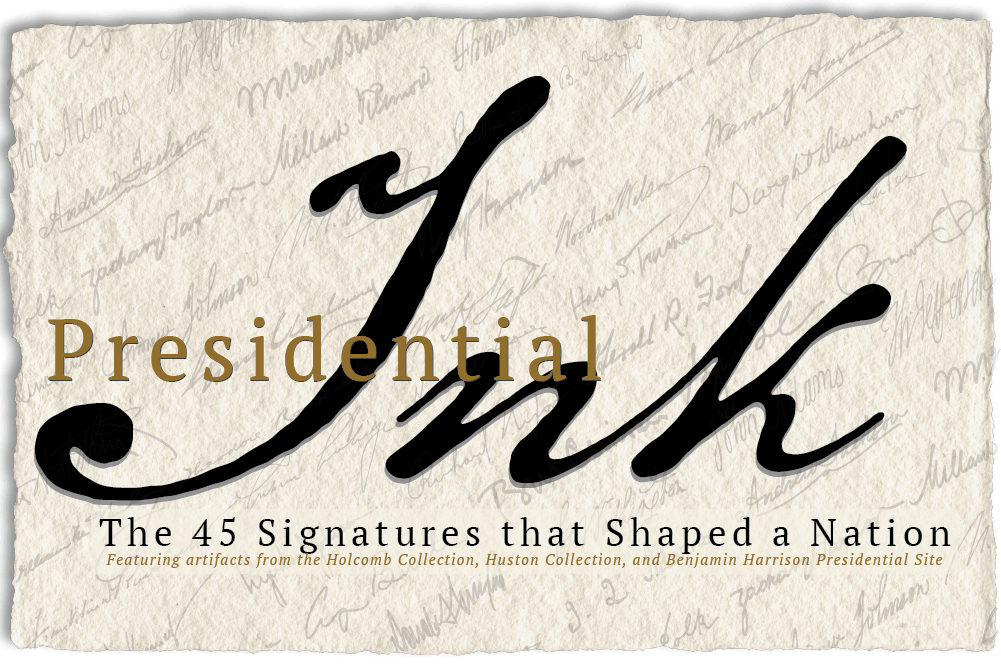 Presidential Ink: 45 Signatures that Shaped a Nation brings together artifacts from the Holcomb Collection, the Huston Collection, and the Benjamin Harrison Presidential Site to explore the enduring power and public fascination of the president’s pen. As the United States approaches the 250th anniversary of the signing of the Declaration of Independence, this exhibit invites visitors to reflect on how the written word has shaped the nation’s laws, leadership, and democratic traditions.