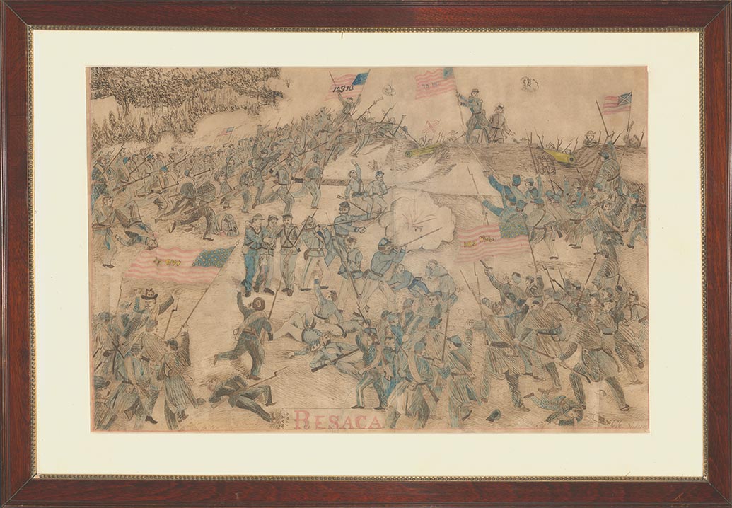 On the second day of the battle of Resaca, both the Confederate wing commander, General John Bell Hood, and the Union wing commander, General Joseph Hooker, took limited offensive action. The Confederate forces came forward slightly from their solidly prepared entrenchments. The Union forces continued to probe for a weakness in the Confederate line.