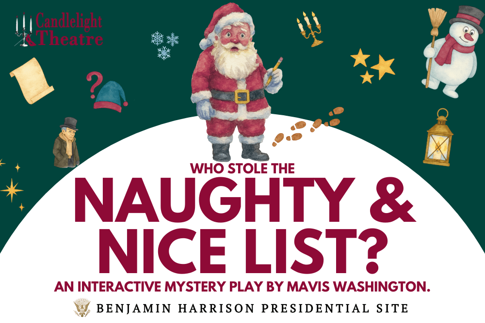 Something strange is afoot at the North Pole… Santa’s Naughty and Nice List has vanished—and without it, Christmas could be canceled! Now it’s up to you to crack the case. Join us at the Benjamin Harrison Presidential Site for this one-of-a-kind interactive mystery, where groups of 10 guests will journey through the historic residence together, interview classic Christmas characters, and uncover clues to find out who’s behind the list’s disappearance.