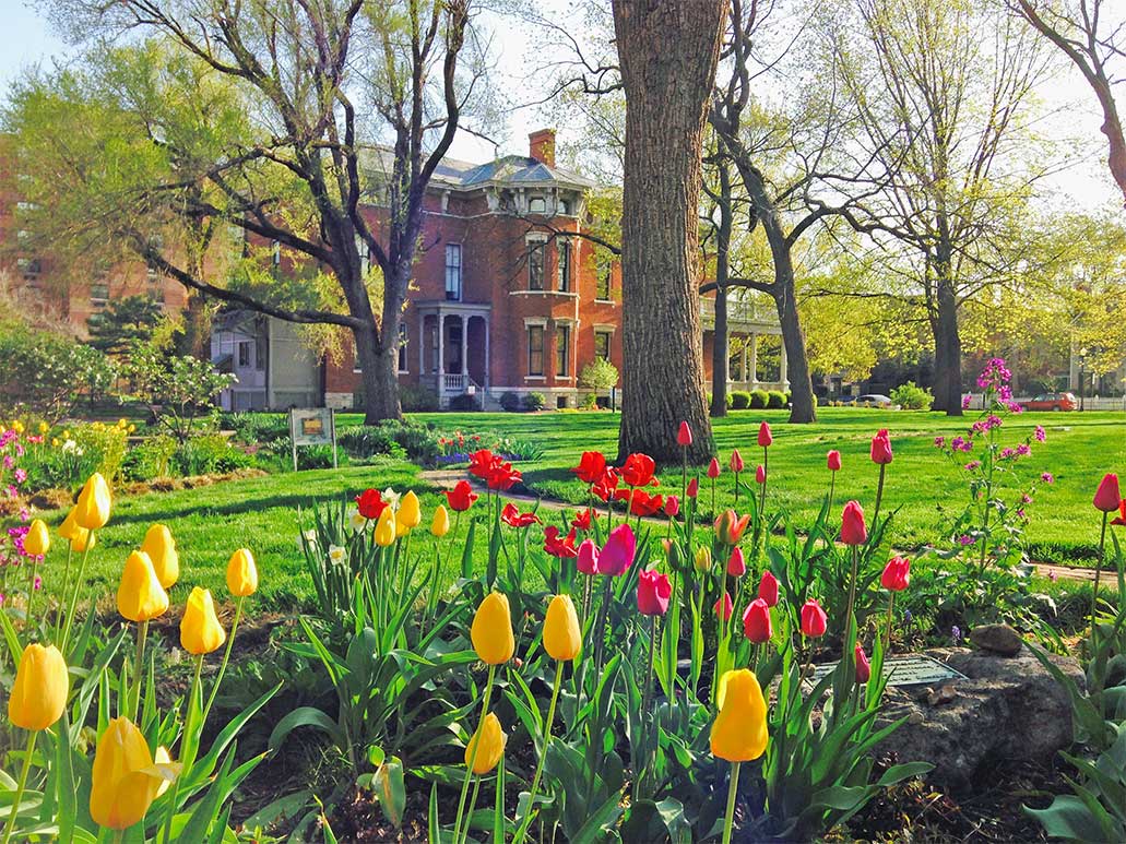 The Presidential Site grounds feature an array of flower beds for visitors to enjoy. Our historic gardens are beautifully restored and masterfully cared for by nine volunteer gardeners (most of whom are Master Gardeners) who manicure and beautify the presidential estate on a weekly basis throughout the spring, summer and fall. They hail from local gardening associations, including: Garfield Park Master Gardeners, Arbutus Garden Club, Irvington Garden Club, Indianapolis Garden Club, Broad Ripple Garden Club, Hillcrest Garden Club, and Northside Master Gardeners.