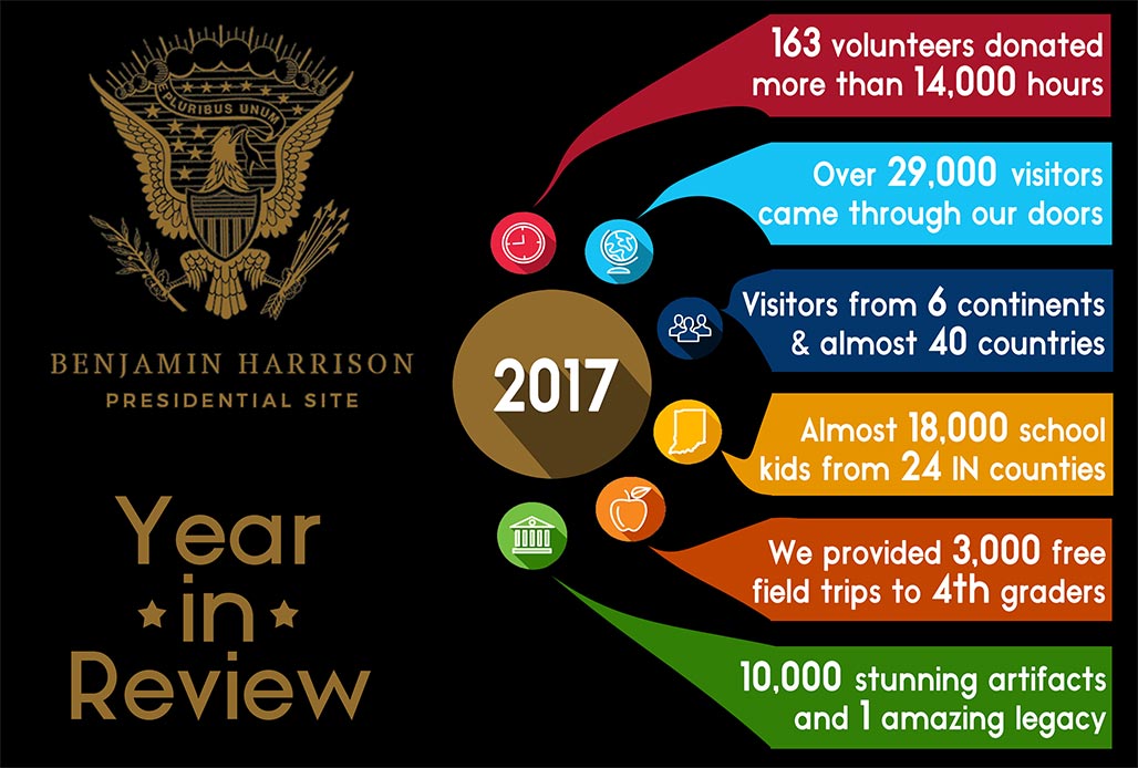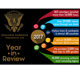 Due to inclement weather, the Benjamin Harrison Presidential Site will be on a two hour delay on January 28, with tours at 11:00, 12:00, and 2:00.